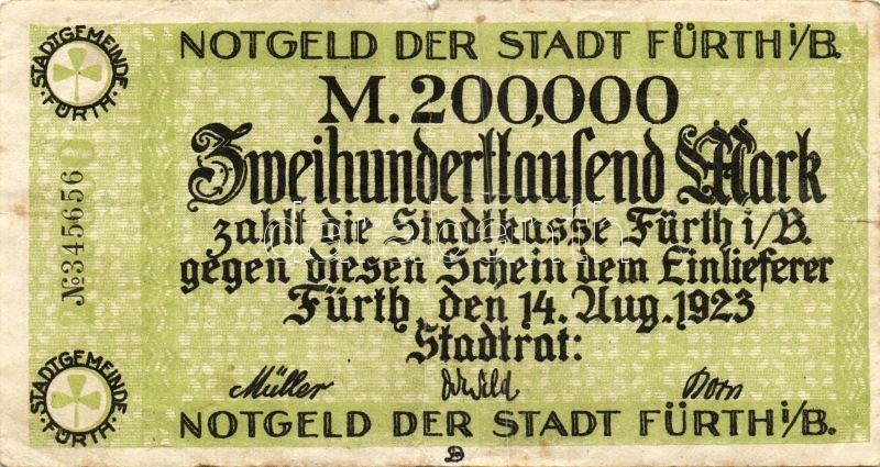 Leírás: Német Birodalom/Weimari Köztársaság/Fürth 1923. 50.000M, 200.000M, 300.000M, 2000.000M T:II/III,III,III/IV
