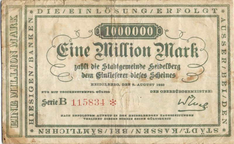 Német Birodalom/Weimari Köztársaság/Heidelberg 1923.8.8. 1000.000M "B"... https://www.darabanth.com/hu/94-Gyorsarveres/94.0/Numizmatika/Nemet-Birodalom-Csaszarsag-Weimari-Koztarsasag-Nemet-Allamok-bankjegyei~274/Nemet-BirodalomWeimari-KoztarsasagHeidelberg-192388-1000000M-B-TIII~II215366