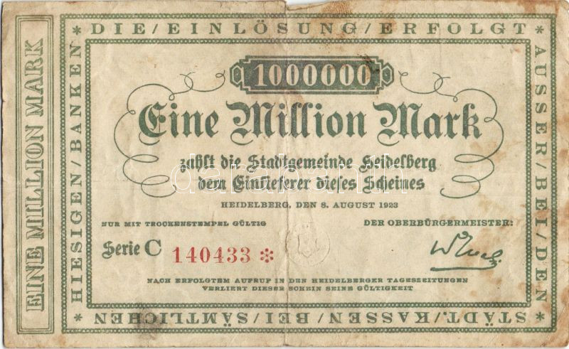 Leírás: Német Birodalom/Weimari Köztársaság/Heidelberg 1923.8.8. 1000.000M "C" T:III