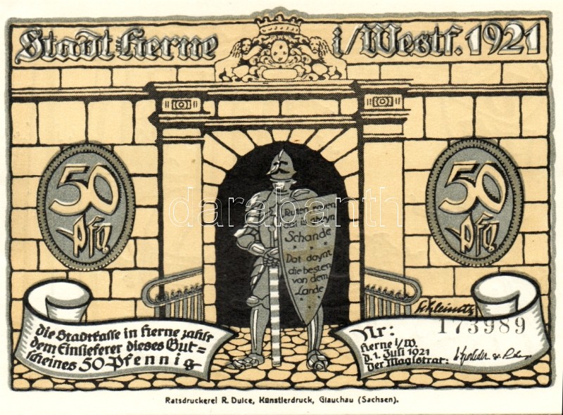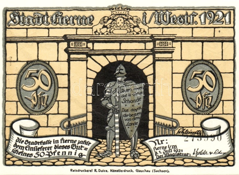 Leírás: Német Birodalom/Weimari Köztársaság/Herne 1921. 50Pf(10x) összesen:10klf db, teljes sor T:I