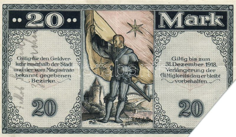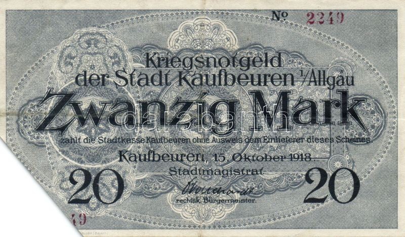 Leírás: Német Birodalom/Weimari Köztársaság/Kaufbeuren 1918. 20M hivatalos érvénytelenítéssel T:II
