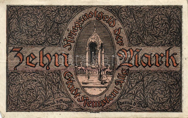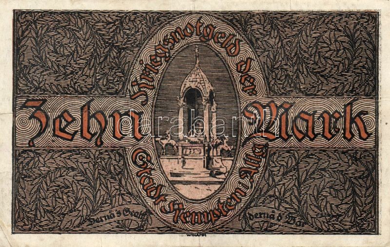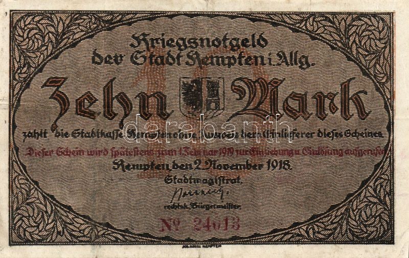 Leírás: Német Birodalom/Weimari Köztársaság/Kempten 1918. 10M (2x) egyugrású sorszámmal T:II