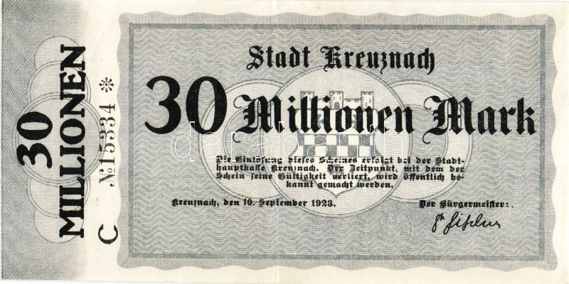 Leírás: Német Birodalom/Weimari Köztársaság/Kreuznach 1923.9.10. 30.000.000M T:II
