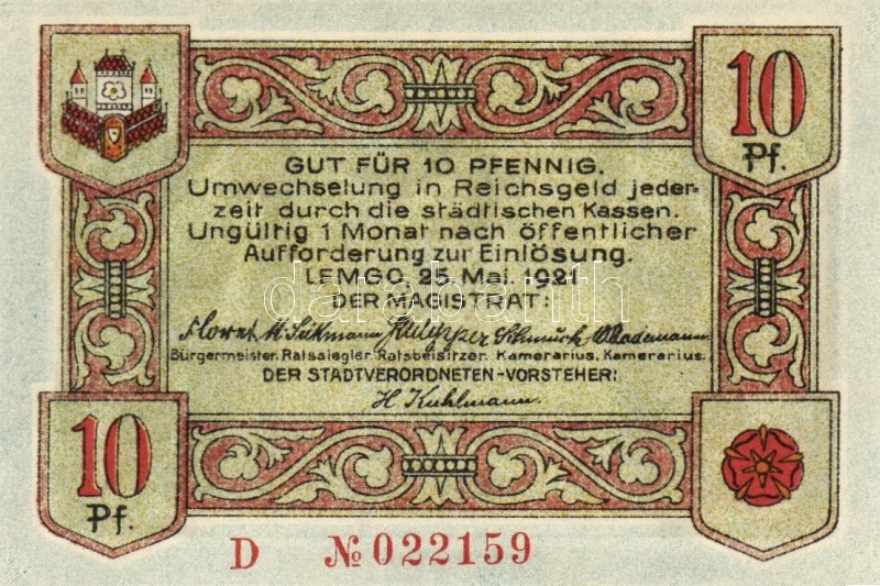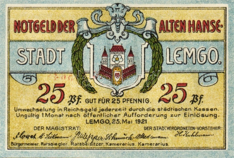 Leírás: Német Birodalom/Weimari Köztársaság/Lemgo 1921. 10Pf + 25Pf + 50Pf összesen:3klf db, teljes sor T:I