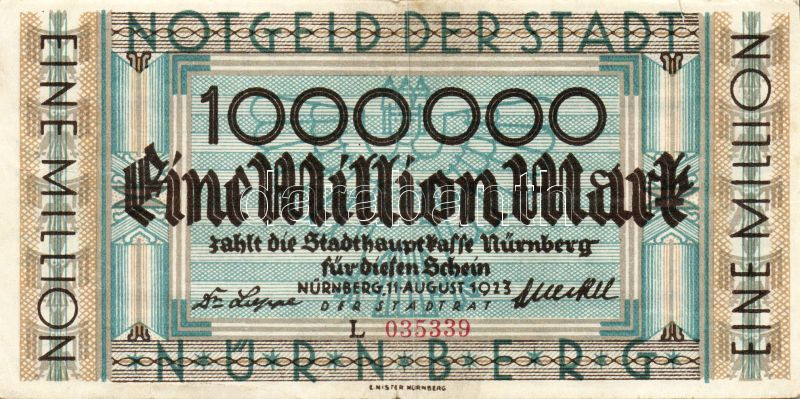 Német Birodalom/Weimari Köztársaság/Nürnberg 1923.8.11. 1000.000M T:II https://www.darabanth.com/hu/94-Gyorsarveres/94.0/Numizmatika/Nemet-Birodalom-Csaszarsag-Weimari-Koztarsasag-Nemet-Allamok-bankjegyei~274/Nemet-BirodalomWeimari-KoztarsasagNurnberg-1923811-1000000M-TII~II215422