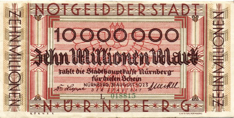 Leírás: Német Birodalom/Weimari Köztársaság/Nürnberg 1923.8.31. 10.000.000M T:II