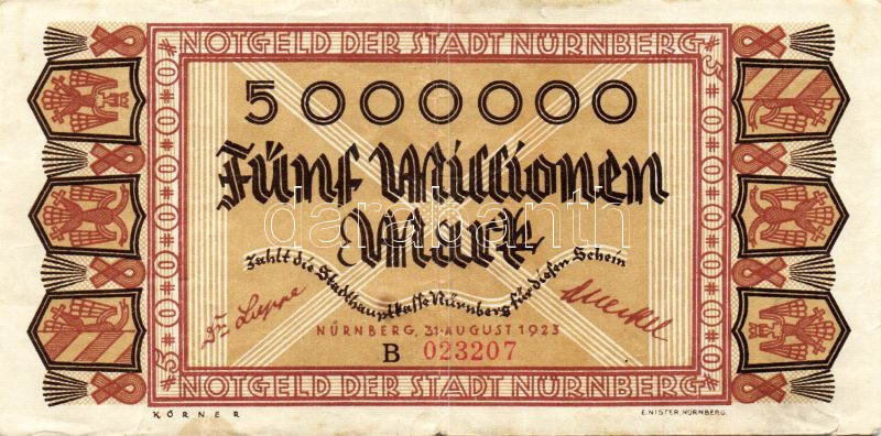 Leírás: Német Birodalom/Weimari Köztársaság/Nürnberg 1923.8.31. 5000.000M T:II