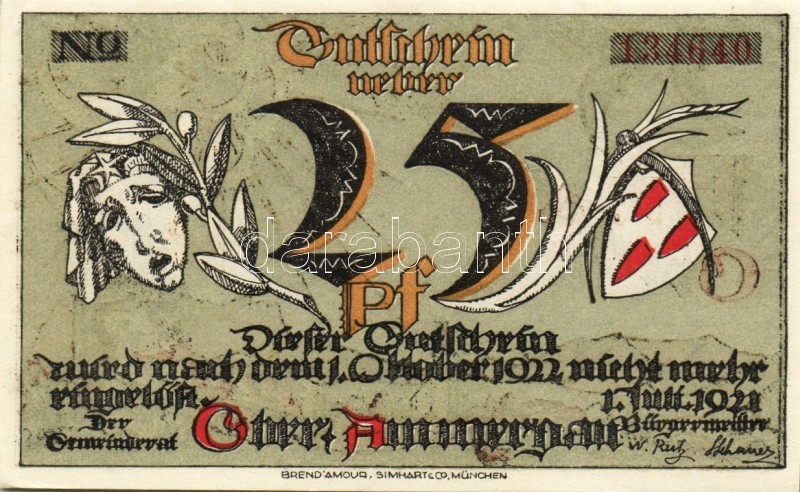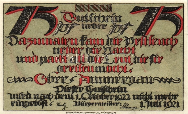 Német Birodalom/Weimari Köztársaság/Oberammergau 1921. 25Pf + 50Pf + 7... https://www.darabanth.com/hu/94-Gyorsarveres/94.0/Numizmatika/Nemet-Birodalom-Csaszarsag-Weimari-Koztarsasag-Nemet-Allamok-bankjegyei~274/Nemet-BirodalomWeimari-KoztarsasagOberammergau-1921-25Pf-plus-50Pf-plus-75Pf-osszesen3klf-db-tel~II211571