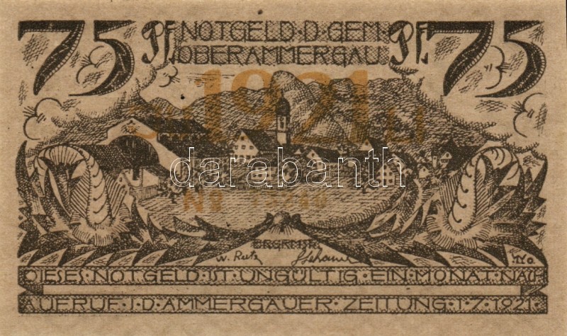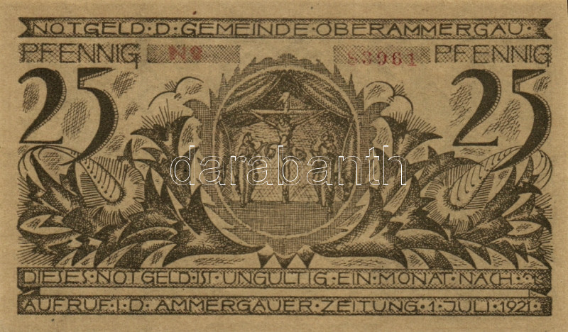 Német Birodalom/Weimari Köztársaság/Oberammergau 1921. 25Pf + 50Pf + 7... https://www.darabanth.com/hu/94-Gyorsarveres/94.0/Numizmatika/Nemet-Birodalom-Csaszarsag-Weimari-Koztarsasag-Nemet-Allamok-bankjegyei~274/Nemet-BirodalomWeimari-KoztarsasagOberammergau-1921-25Pf-plus-50Pf-plus-75Pf-osszesen3klf-db-tel~II211575