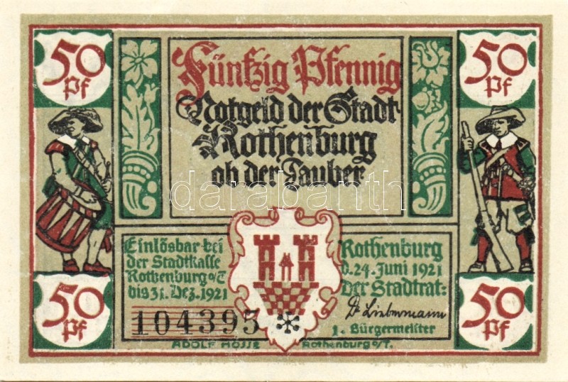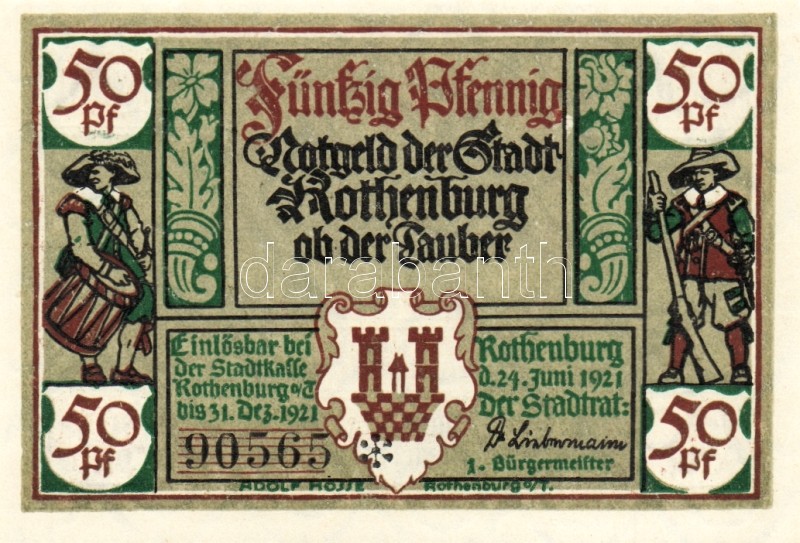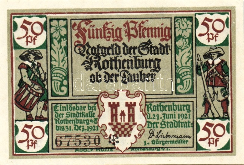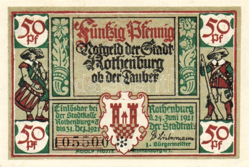 Leírás: Német Birodalom/Weimari Köztársaság/Rhotenburg 1921. 50Pf(6x) összesen:6klf db, teljes sor T:I