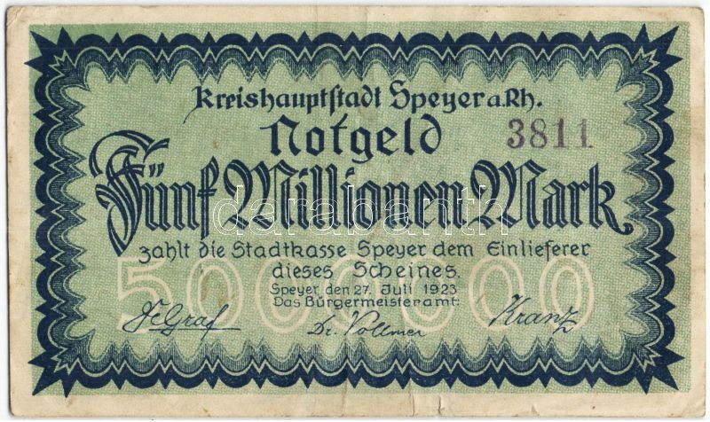 Német Birodalom/Weimari Köztársaság/Speyer a. Rh. 1923.7.27. 5000.000M... https://www.darabanth.com/hu/94-Gyorsarveres/94.0/Numizmatika/Nemet-Birodalom-Csaszarsag-Weimari-Koztarsasag-Nemet-Allamok-bankjegyei~274/Nemet-BirodalomWeimari-KoztarsasagSpeyer-a-Rh-1923727-5000000M-hatoldali-nyomat-fekete-~II215453