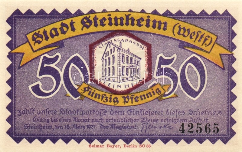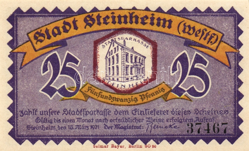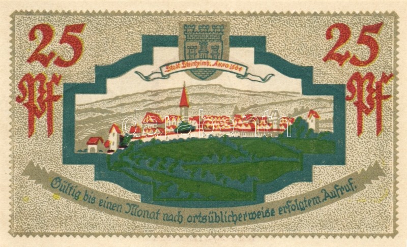 Német Birodalom/Weimari Köztársaság/Steinheim 1921. 25Pf + 50Pf + 1M ö... https://www.darabanth.com/hu/94-Gyorsarveres/94.0/Numizmatika/Nemet-Birodalom-Csaszarsag-Weimari-Koztarsasag-Nemet-Allamok-bankjegyei~274/Nemet-BirodalomWeimari-KoztarsasagSteinheim-1921-25Pf-plus-50Pf-plus-1M-osszesen3klf-db-teljes-s~II211553