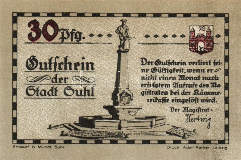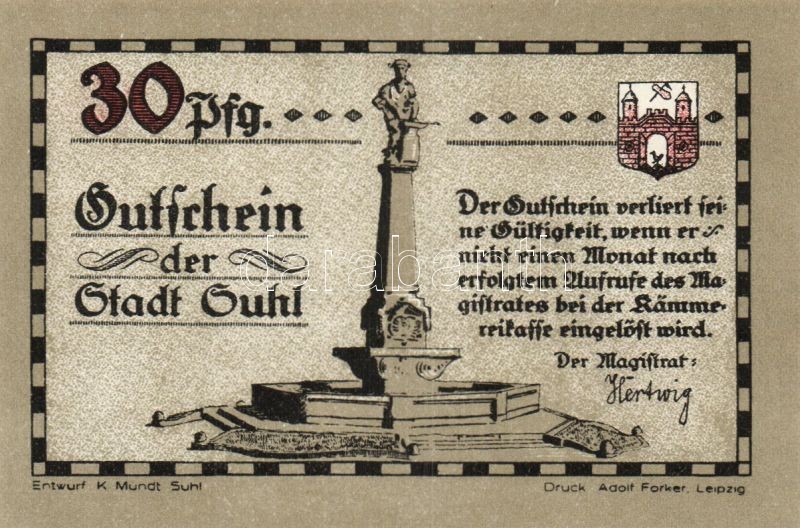 Leírás: Német Birodalom/Weimari Köztársaság/Suhl 1922. 30Pf (4x) mind klf, teljes sor! T:I