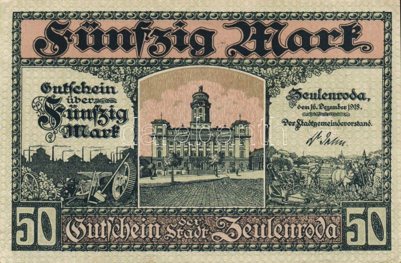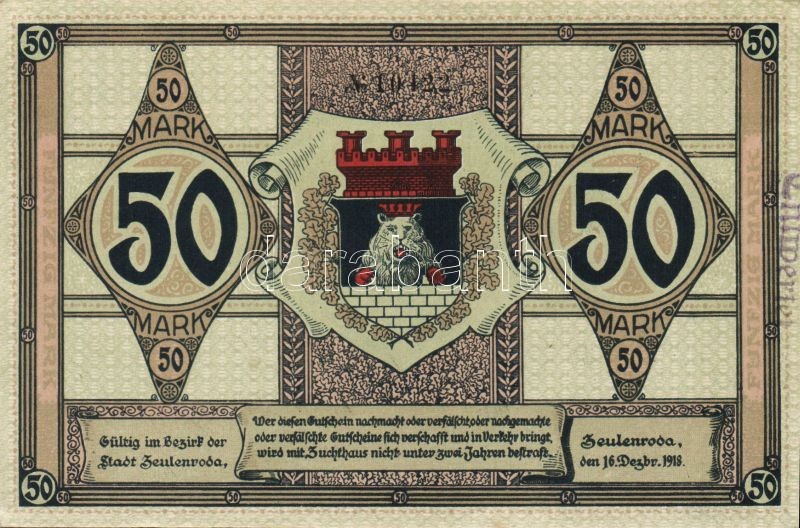 Leírás: Német Birodalom/Weimari Köztársaság/Zeulenroda 1918. 50M hivatalos érvénytelenítéssel T:I-
