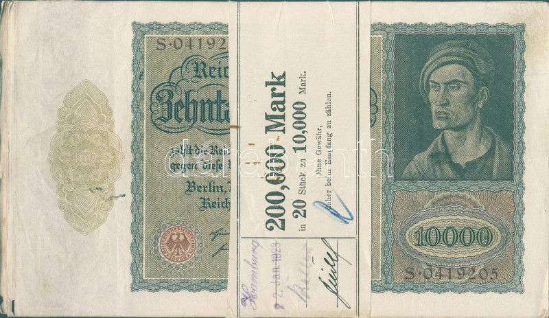 Leírás: Német Birodalom/Weimari köztársaság 1923. 10000M(20x) eredeti banki szalaggal átkötve benne egymásutáni sorszámokkal! T:I-,II,III