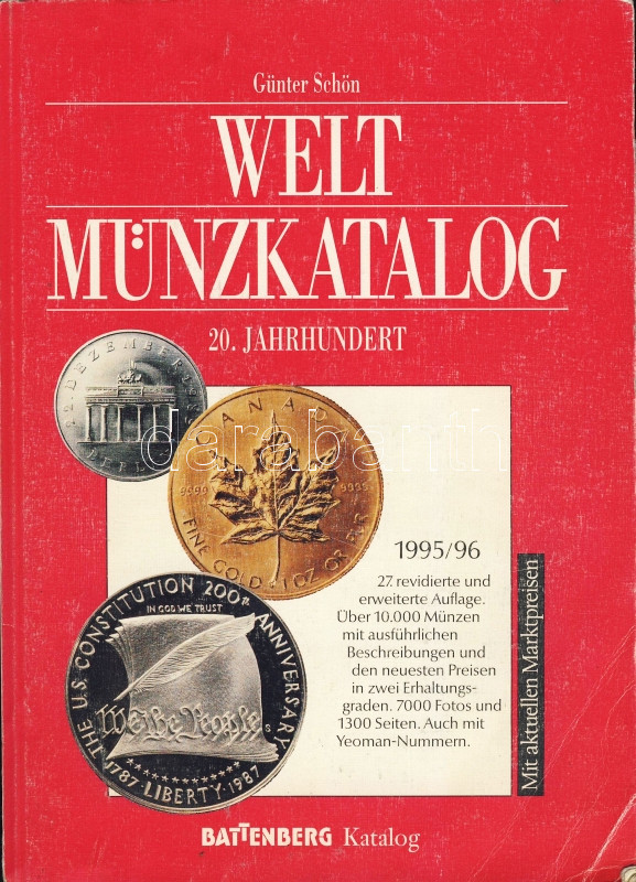 G.Schön: Welt Münzkatalog - Világ pénzei 20. század (1995/96.) https://www.darabanth.com/hu/94-Gyorsarveres/94.0/Numizmatika/Numizmatikai-irodalom~270/GSchon-Welt-Munzkatalog--Vilag-penzei-20-szazad-199596~II216032