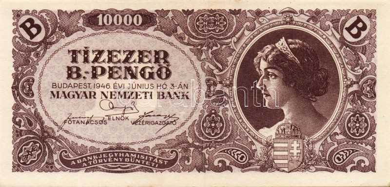 1946. 10.000BP(5x) T:I,I- https://www.darabanth.com/hu/94-Gyorsarveres/94.0/Numizmatika/Osztrak-magyar-magyar-es-magyar-vonatkozasu-bankjegyek~285/1946-10000BP5x-TI-I-~II216300