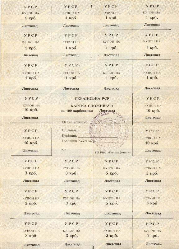 Leírás: Ukrán R.SZ.R. DN 28db kupon összefüggő ívben összesen 100 Karbovanee névértékben