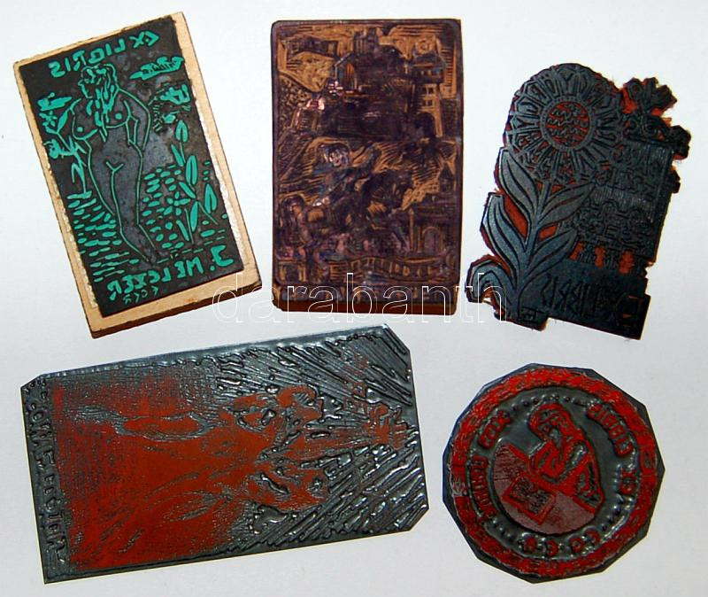Leírás: 5 db ex libris fém- és fa nyomóforma