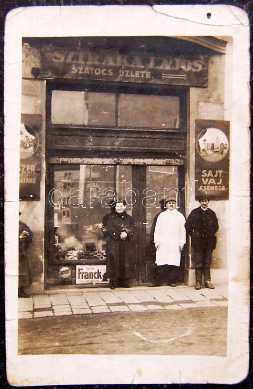 Sztraka Lajos szatócsüzlete fotólap (EB) https://www.darabanth.com/hu/96-Gyorsarveres/96.0/Festmeny-mutargy-papirregiseg-egyeb/Foto-Photo~200306/Sztraka-Lajos-szatocsuzlete-fotolap-EB~II221199