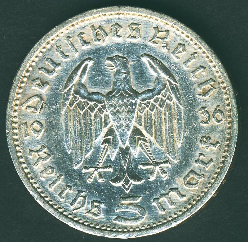Leírás: Német 3. Birodalom 1936E 5M Ag "Hindenburg" T:2/3