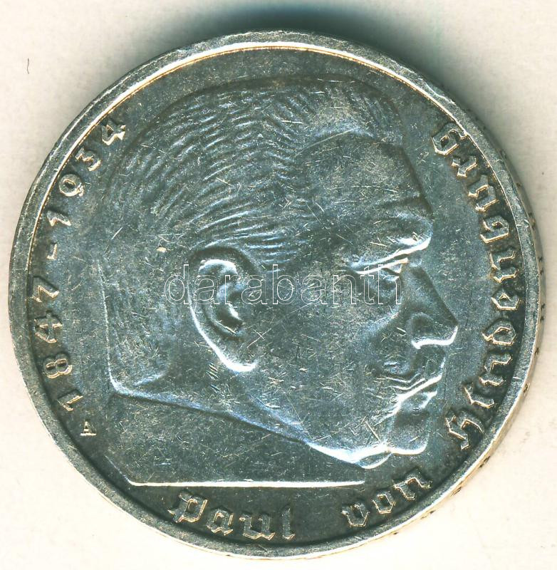 Leírás: Német 3. Birodalom 1938A 5M Ag "Hindenburg" nagy h.k.-tel T:2/3 kis ph.