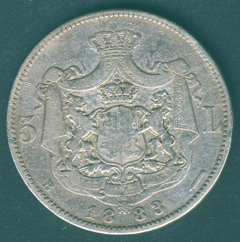 Leírás: Románia 1883B 5L Ag I.Károly T:3 ph.
