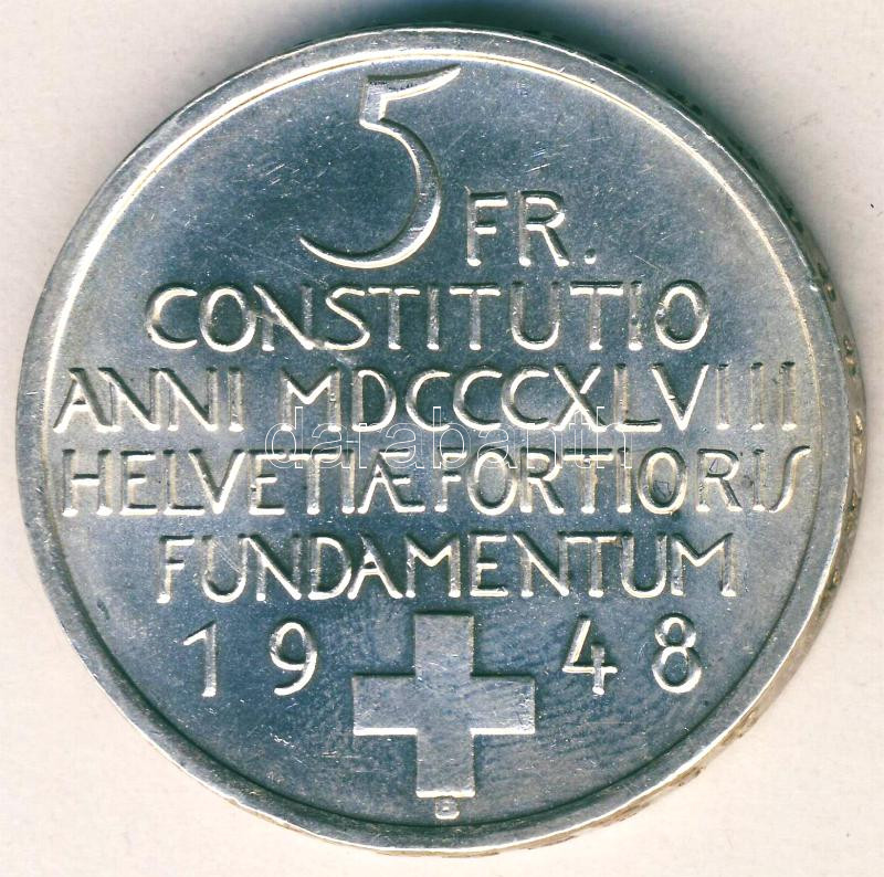 Leírás: Svájc 1948. 5Fr Ag "100 éves az Alkotmány" T:2+ ph.
