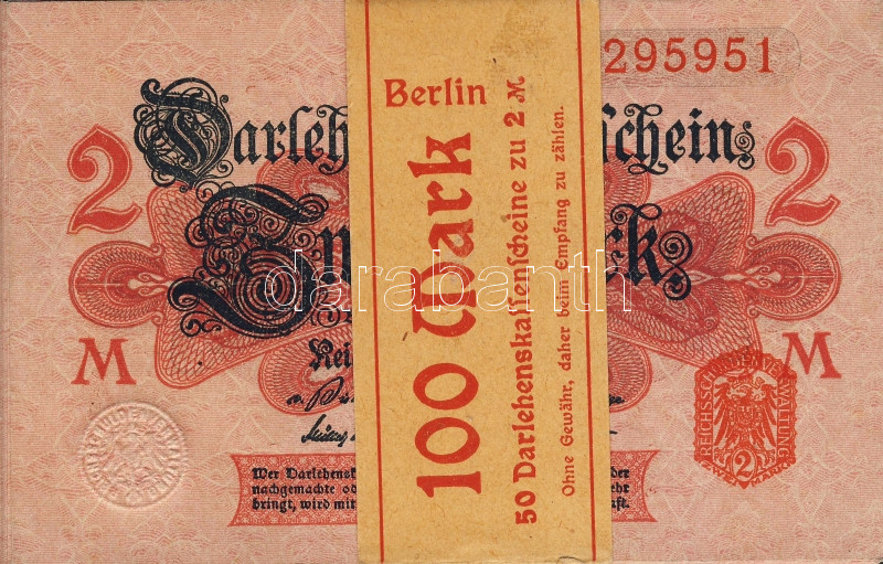 Leírás: Német Birodalom/Császárság 1914. 2M(50x) 1db kivételével egymásutáni sorszámokkal, eredeti bankszalaggal átkötve! T:I(pár db kivételével),II+