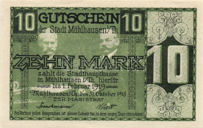 Leírás: Német Birodalom/Császárság/Mühlhausen i. Thüringen 1918.10.31. 10M (2x) klf variánsok T:I,I-