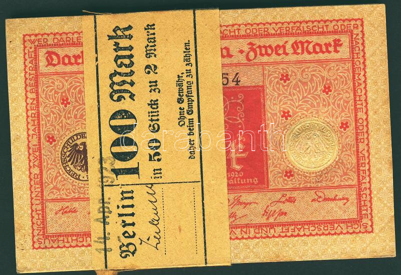 Leírás: Német Birodalom/Weimari Köztársaság 1920. 2M(50x)egymásutáni sorszámokkal, eredeti bankszalaggal átkötve! T:I