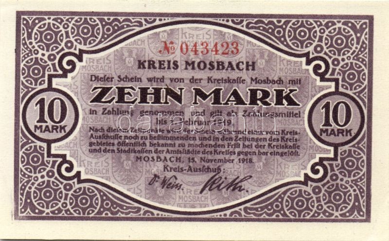 Német Birodalom/Weimari Köztársaság/Mosbach 1918.11.15. 5M, 10M pár T:... https://www.darabanth.com/hu/96-Gyorsarveres/96.0/Numizmatika/Nemet-Birodalom-Csaszarsag-Weimari-Koztarsasag-Nemet-allamok-bankjegyei-papir-es-fem~200320/Nemet-BirodalomWeimari-KoztarsasagMosbach-19181115-5M-10M-par-TI~II221521
