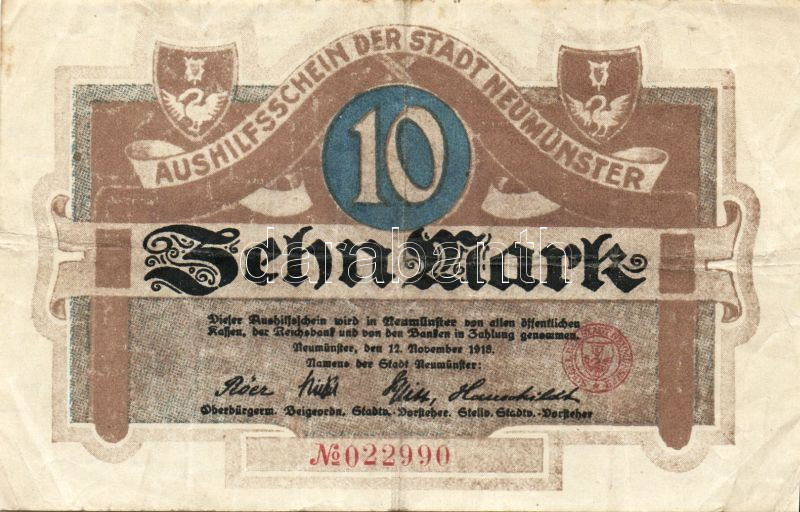 Német Birodalom/Weimari Köztársaság/Neumünster 1918.11.12. 10M T:III https://www.darabanth.com/hu/96-Gyorsarveres/96.0/Numizmatika/Nemet-Birodalom-Csaszarsag-Weimari-Koztarsasag-Nemet-allamok-bankjegyei-papir-es-fem~200320/Nemet-BirodalomWeimari-KoztarsasagNeumunster-19181112-10M-TIII~II221596