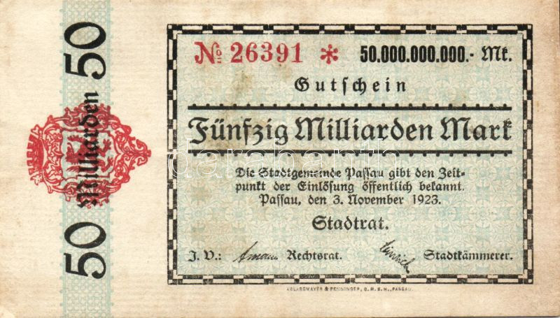Leírás: Német Birodalom/Weimari Köztársaság/Passau 1923.11.3. 50.000.000.000M T:II
