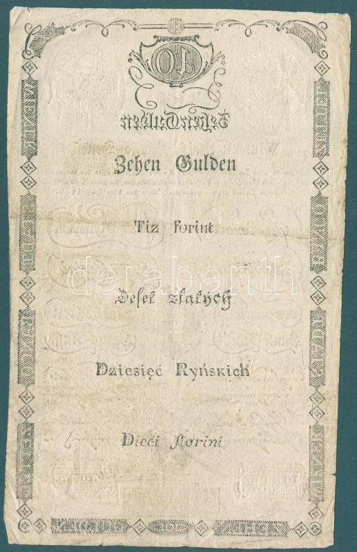 1806. Wiener Stadt Banco Zettel 10G T:II- https://www.darabanth.com/hu/96-Gyorsarveres/96.0/Numizmatika/Osztrak-magyar-magyar-es-magyar-vonatkozasu-bankjegyek-Austrian-Hungarian-Hungarian-and~200322/1806-Wiener-Stadt-Banco-Zettel-10G-TII-~II222080