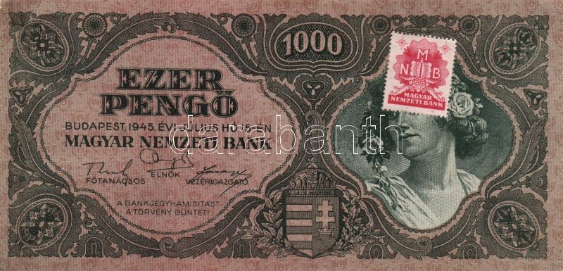 Leírás: 1945. 1000P (2x) egymásutáni sorszámokkal, bélyeggel T:I