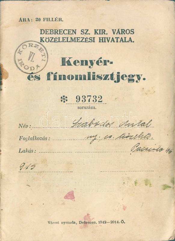 1942. Debreceni kenyér és lisztjegy füzetes formában https://www.darabanth.com/hu/96-Gyorsarveres/96.0/Numizmatika/Papir-es-fem-szuksegpenzek-hadifogolypenzek-fantaziapenzek-penzhelyettesito-bonok-Paper-and~200319/1942-Debreceni-kenyer-es-lisztjegy-fuzetes-formaban~II145913