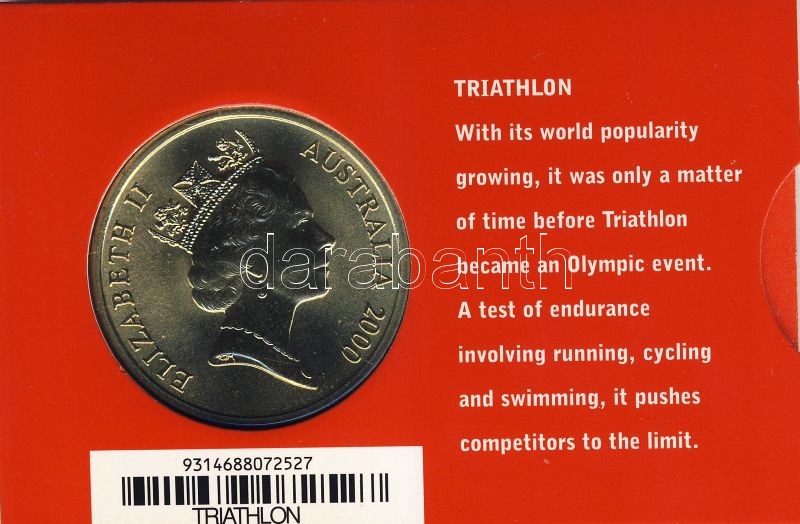 Leírás: Ausztrália 2000. 5$ "Triatlon" díszkiadásban, tanúsítvánnyal T:BU