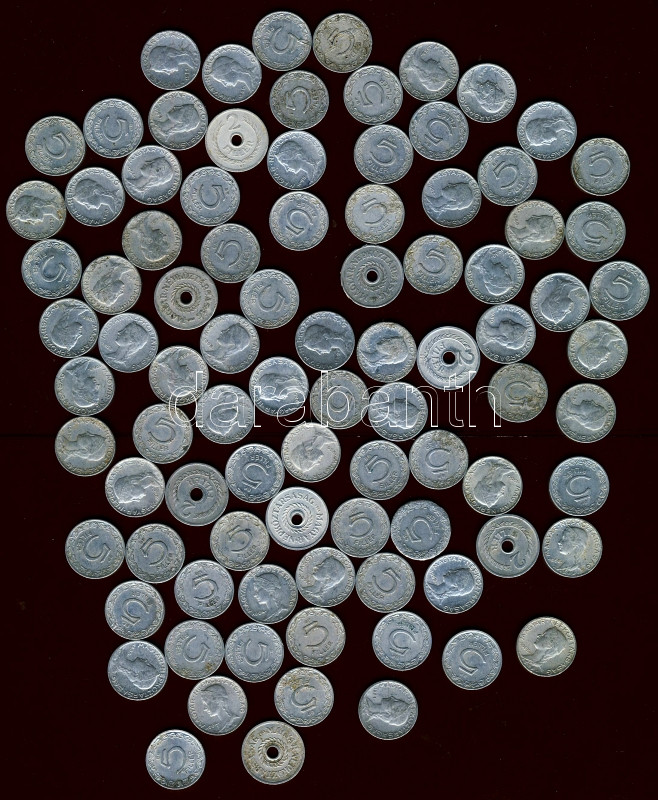 1950-65. 2f (8x) + 5f (81x) T:2,3 https://www.darabanth.com/hu/98-Gyorsarveres/98.0/Numizmatika/Magyar-es-magyar-verdejelu-fem-es-ezustpenzek-kozepkortol-napjainkig~314/1950-65-2f-8x-plus-5f-81x-T2-3~II227891