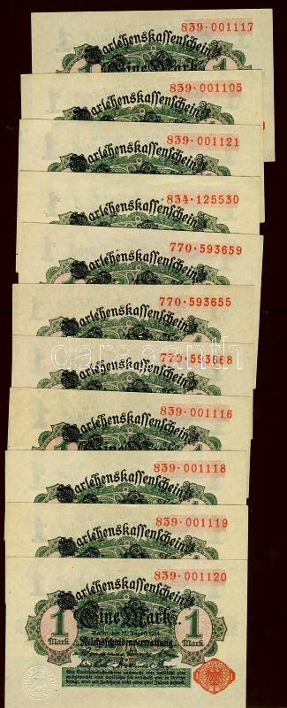 Leírás: Német Birodalom/Császárság 1914. 1M(13x) benne egymásutáni, ill. kevés ugrású sorszámokkal ,alapnyomat nélküli ,piros pecsétes variáns! T:I,I-