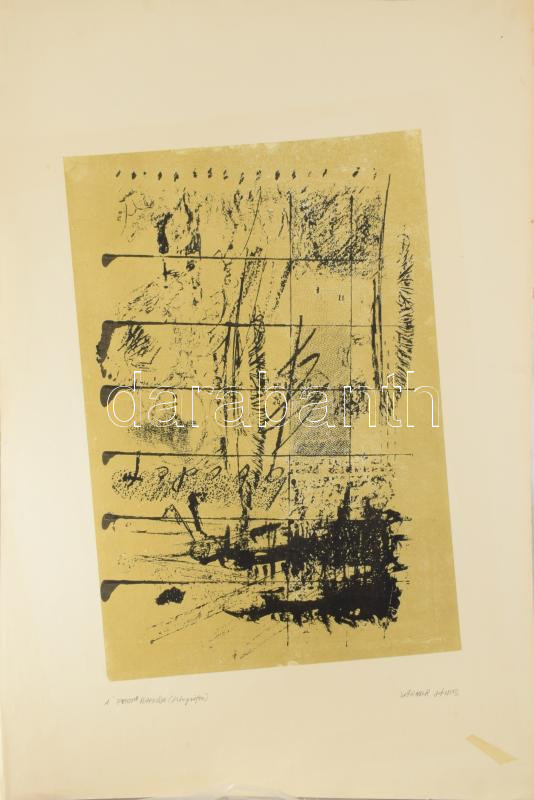 Wagner János (1936-2022): A festő naplója, 1970 körül. Litográfia, papír, jelezve jobbra lent: Wagner János, balra lent: A festő naplója (litográfia). 57×41 cm.