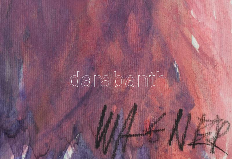 Leírás: Wagner János (1936-2022): Hajnal. Akvarell, papír, jelezve jobbra lent: Wagner. Hátoldalán autográf felirattal. 50×36 cm.