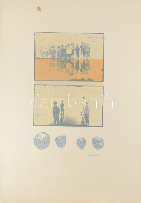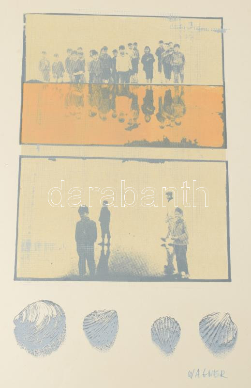 Leírás: Wagner János (1936-2022): Kagylók Vietnámból, 1970. Szitanyomat, papír, jelezve jobbra lent: Wagner. Reprodukálva: Wehner Tibor: Wagner János. Bp., 2020, Virtual Market Kft, 13. oldal. Lap alján apró szakadásokkal, lap tetején kisebb folttal. 49×30 cm (lapméret: 84x59,5 cm).