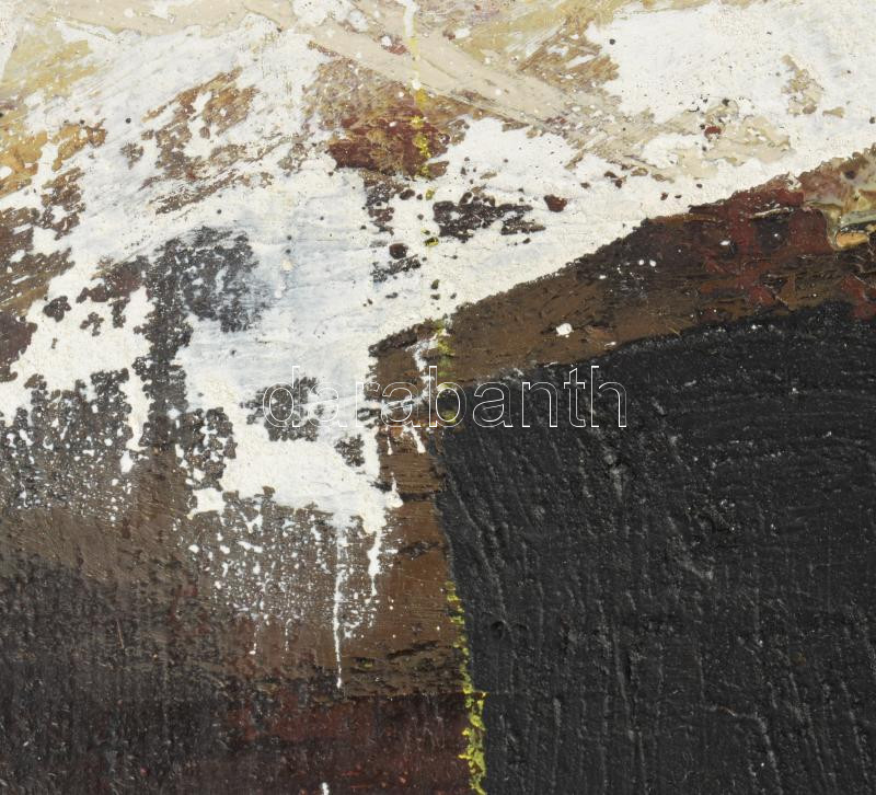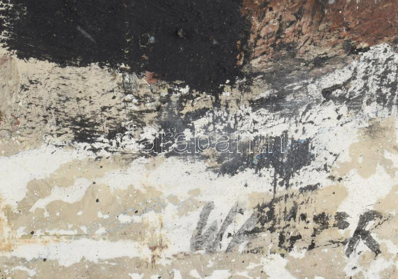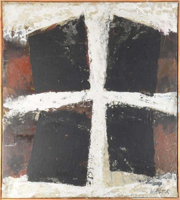 Leírás: Wagner János (1936-2022): Kereszt (cím nélkül). Olaj, vegyes technika, vászon, jelezve jobbra lent: Wagner. 85x78 cm. Kissé sérült fakeretben.