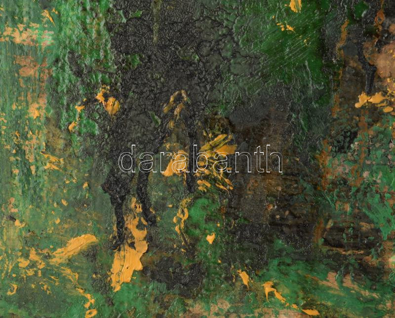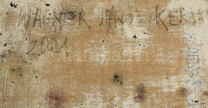 Wagner János (1936-2022): Kert (Éjszakai történet). Olaj, vászon, jelezve jobbra lent: Wagner. Hátoldalán autográf felirattal. 100x68 cm. Fakeretben. KIZÁRÓLAG SZEMÉLYES ÁTVÉTEL, NEM POSTÁZZUK! / ONLY PERSONAL COLLECTION AT OUR OFFICE!