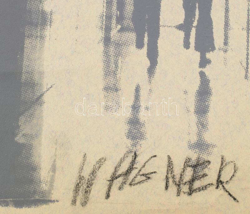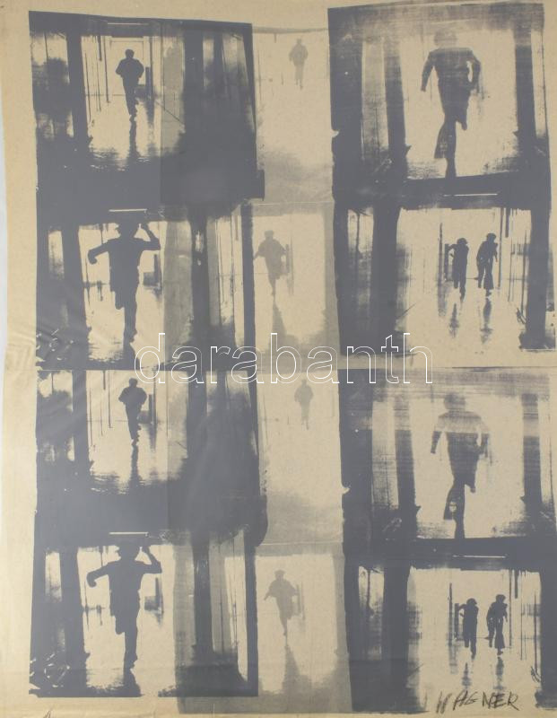 Leírás: Wagner János (1936-2022): Lakótelep, 1974. Szitanyomat, papír, jelezve jobbra lent: Wagner. Reprodukálva: Wehner Tibor: Wagner János. Bp., 2020, Virtual Market Kft, 17. oldal. Lapszéli kisebb szakadásokkal. 99,5×64 cm.
