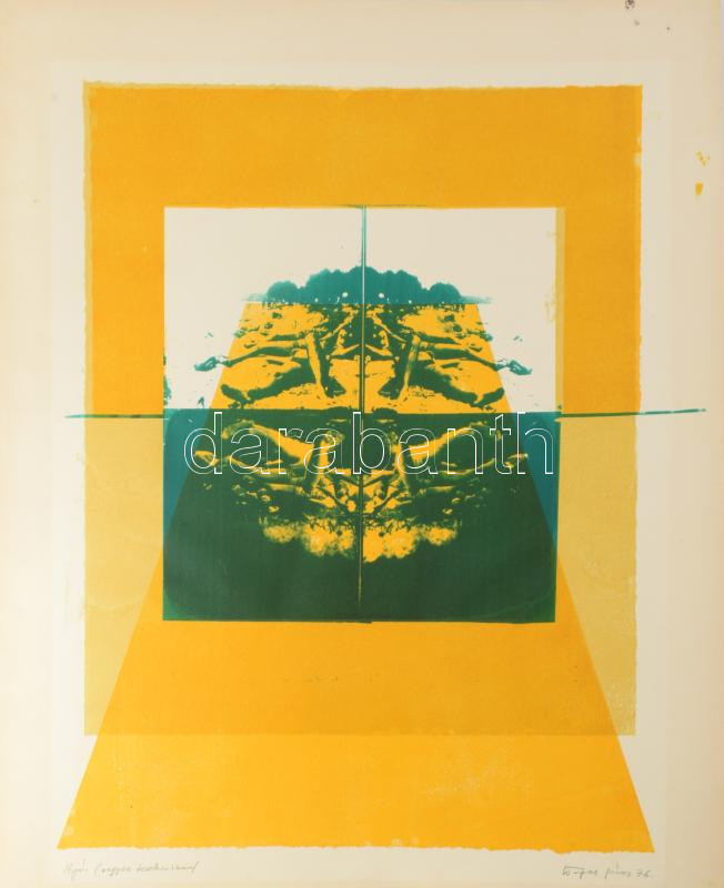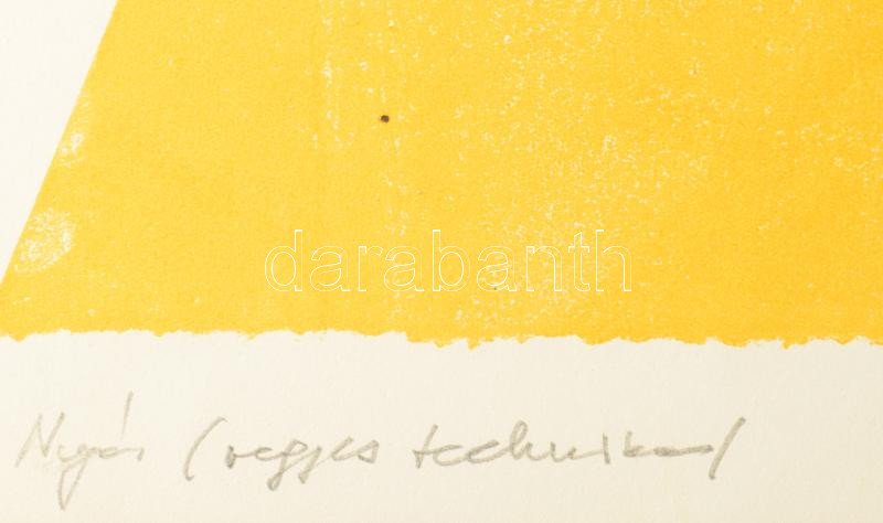 Leírás: Wagner János (1936-2022): Nyár, 1976. Vegyes technika (sokszorosított grafika), papír, jelezve jobbra lent: Wagner János 76, balra lent: Nyár (vegyes technika). Párdarabja reprodukálva: Wehner Tibor: Wagner János. Bp., 2020, Virtual Market Kft, 14. oldal. 61,5×51,5 cm.