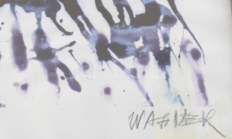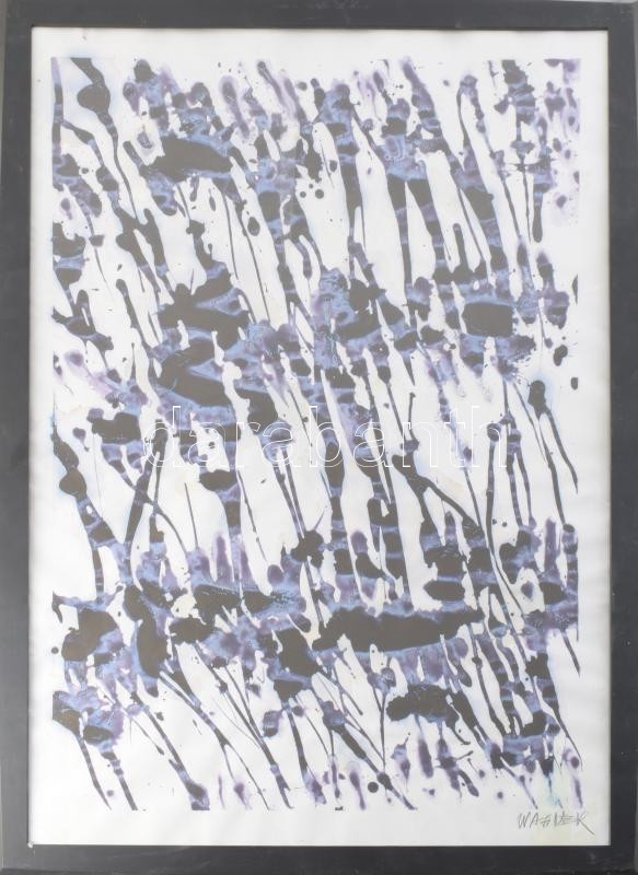 Leírás: Wagner János (1936-2022): Rajz IV. Tus, papír, jelezve jobbra lent: Wagner. Hátoldalán autográf felirattal. Reprodukálva: Wehner Tibor: Wagner János. Bp., 2020, Virtual Market Kft, 188. oldal. Plexiüvegezett keretben. 70x50 cm.