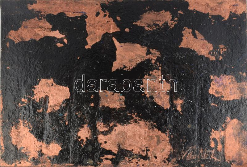 Wagner János (1936-2022): Sziklarajz. Akril, zománc, üvegapplikáció, vászon, jelezve jobbra lent: Wagner. Hátoldalán autográf felirattal: Wagner János, Sziklarajz. 68,5×100 cm. KIZÁRÓLAG SZEMÉLYES ÁTVÉTEL, NEM POSTÁZZUK! / ONLY PERSONAL COLLECTION AT OUR OFFICE!