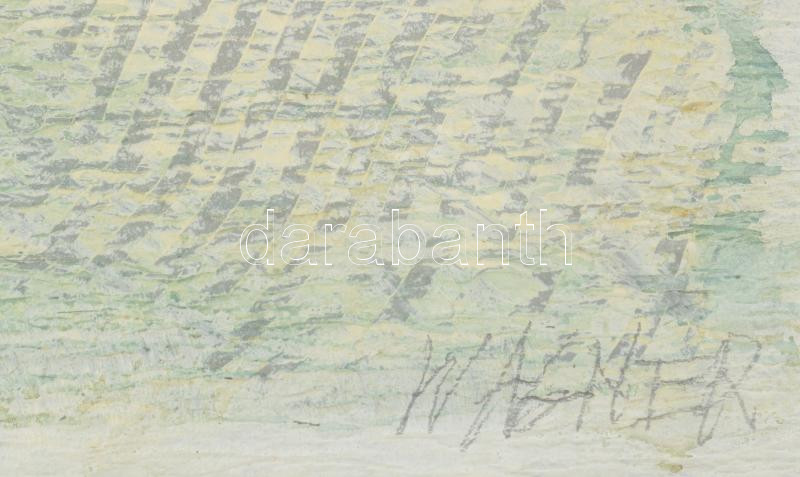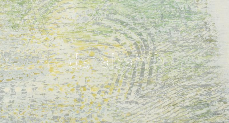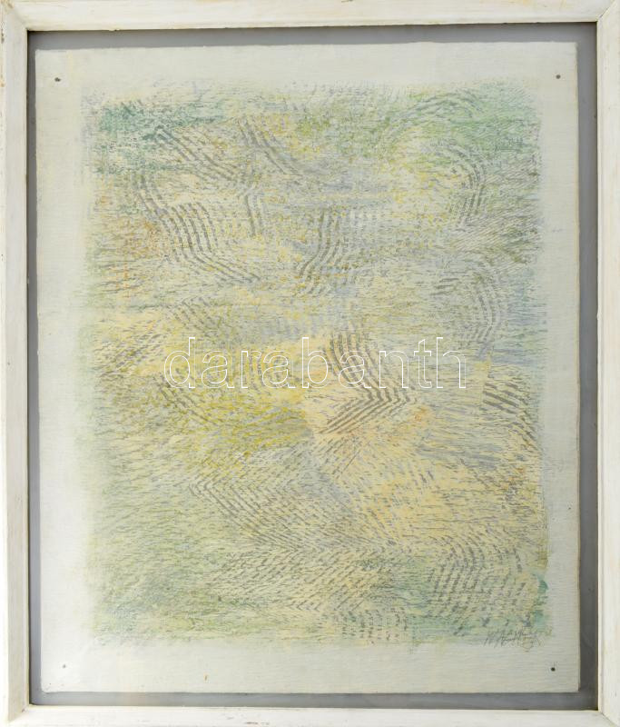 Leírás: Wagner János (1936-2022): Vízgyűrűk. Akril, fa, jelezve jobbra lent: Wagner. Hátoldalán autográf felirattal. 60x50 cm. Üvegezett fakeretben.